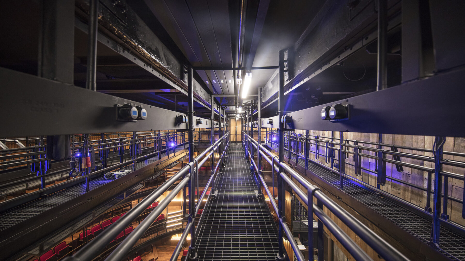 LAMDA's main theatre's tension wire grid providing safe rigging access over the auditorium