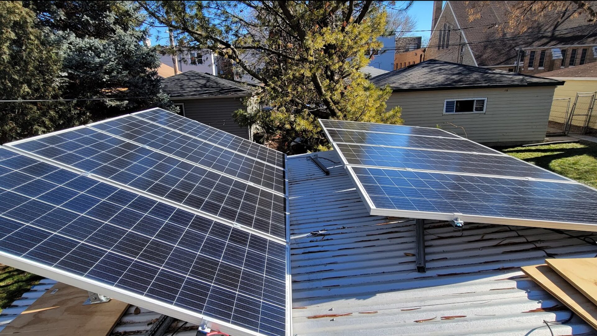 “As a DIY project, I decided to find and buy used equipment wherever possible and sort out how to cobble together a safe and efficient solar system for our home. We now have 8 panels on the top of our corrugated roof pergola (our house is 120 years old and we didn’t think putting the panels on the roof was wise!). They tie back into our main electrical panel through an inverter and though they don’t cover all of our electrical usage, they make a substantial dent in our dependency on the utility grid.