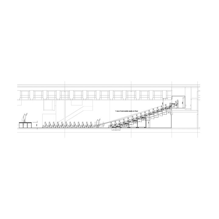 For the first time in the history of St. Ann’s Warehouse, their entire operation, including administrative offices are on the same site as their theatre. The building’s centrepiece is a 10,000 sq ft flexible theatre space, with capacity for 300 to 800 people, to accommodate St. Ann’s core theatre and music programming, large-scale festivals, and special community milestone events. The facility also houses a 1,000 sq ft multi-use studio, suited for intimate, smaller-scale programs and activities by local artists and community groups. Flexible theatrical infrastructure was spread throughout the building, including extending the vast overhead catwalk system throughout the lobby and public circulation spaces. In this building, the performances can, and do, happen anywhere.