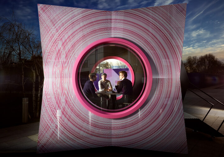 The project is a precursor to the permanent podcast studio currently being constructed in White City Place, with Charcoalblue as theatre and acoustics consultants. Located at the heart of the White City regeneration district, the podcast studio's facade is generated from the first spoken words transmitted by radio - 'One, two, three, four. Is it snowing where you are Mr Thiessen?'