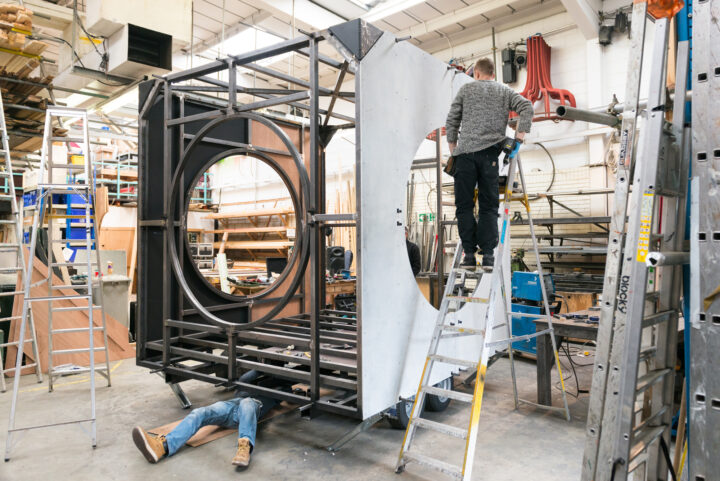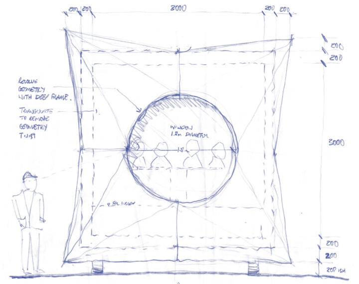 The frame of the structure was created using steel box sections, overlaid with CNC cut and folded mirror finish Dibond aluminium composite for the external facade, and lined with acoustic insulation. Charcoalblue were acoustic consultants to Fathom for The Pod, advising on the sound insulation, ventilation noise control, and interior sound-absorbing finishes.