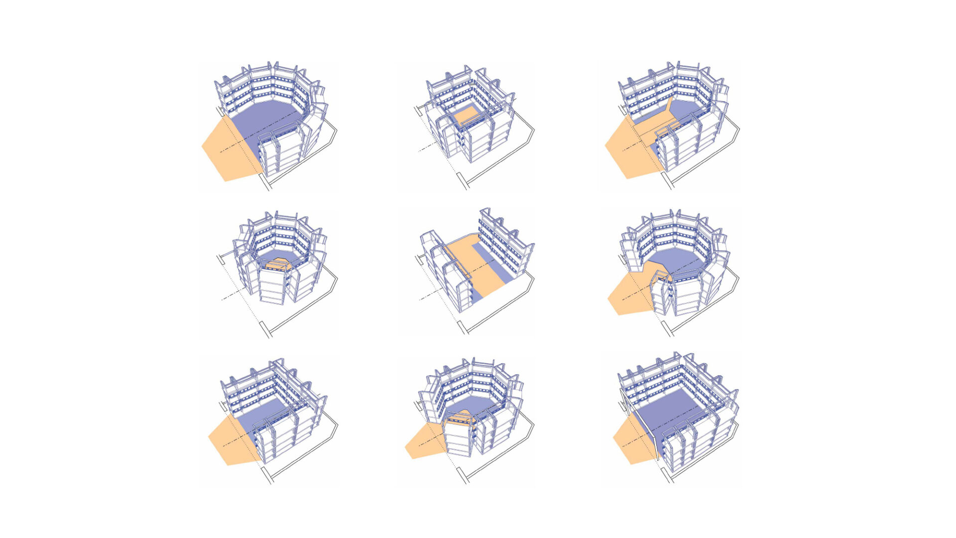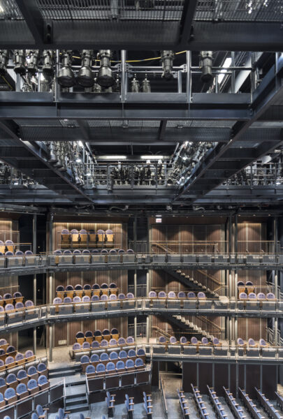 Flexibility for the Designers and Directors is at the heart of the project. The auditorium can be reconfigured from a proscenium house, to thrust, traverse and in-the-round configurations. Nine four-story-tall moveable seating towers enable the creation of twelve different stage formats seating between 150 and 850.