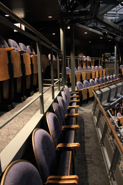 Nine four-story-tall moveable seating towers enable the creation of twelve different stage formats seating between 150 and 850.